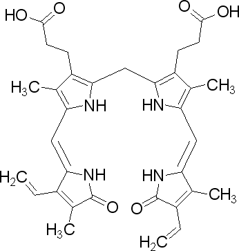 性状:浅橙色到深红棕色单斜棱晶。对光敏感。加热色渐渐变黑而不熔融。溶于苯、氯仿、氯苯、二硫化碳、酸和碱,微溶于乙醇和乙醚,几乎不溶于水。浅绿色溶液在紫外线下显红色荧光。干燥时稳定,氯仿溶液在暗处稳定,碱溶液易氧化。